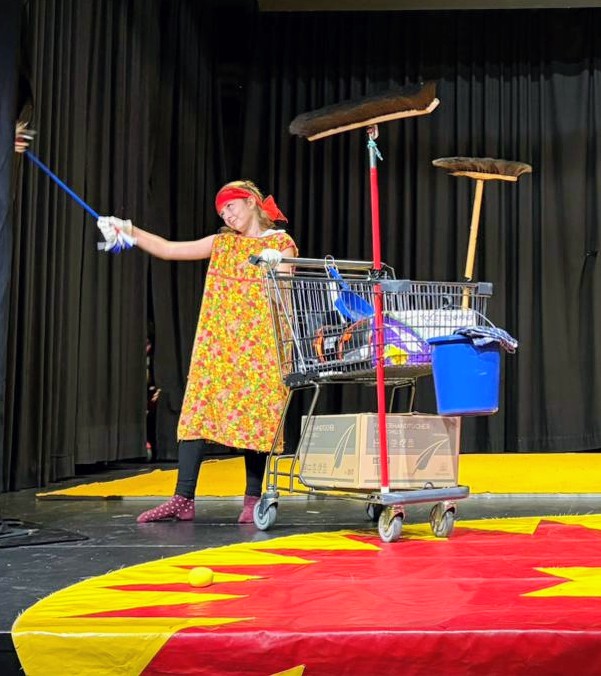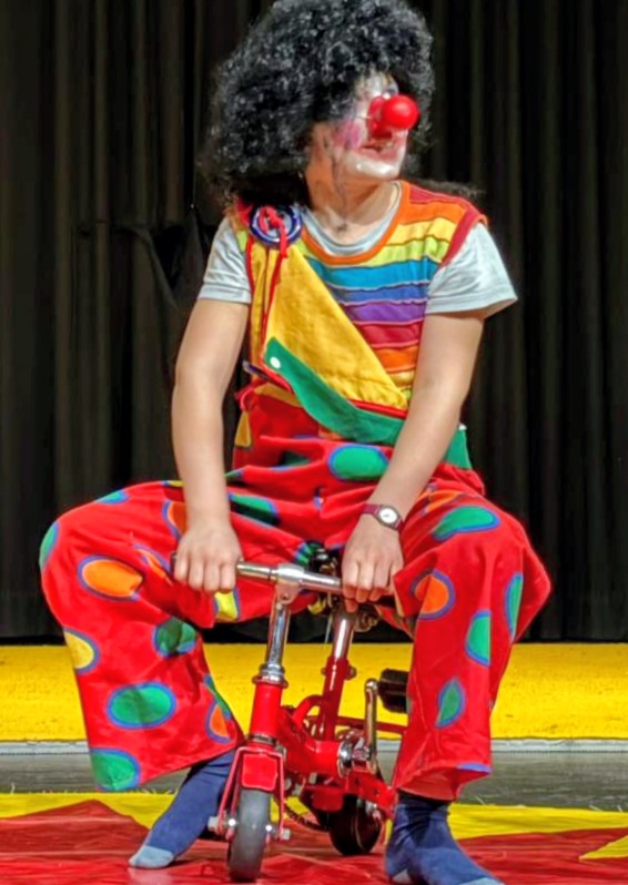 Am ersten Tag wurden die verschiedenen Zirkusschulen wie Jonglage, Schauspiel, Akrobatik und Equilibristik von Boris Tragico-Barth sehr anschaulich präsentiert. Anschließend konnten die Teilnehmer entscheiden, wo sie ihre Schwerpunkte legen wollen und sich dann jeweils zwei bis drei passende Nummern überlegen. Immer wieder konnten sie sich in verschiedenen Bereichen ausprobieren und es entwickelten sich ständig neue Ideen. Die Kreativität der Schüler:innen schien keine Grenzen zu haben und so entstand schließlich die Idee mit der Wette zwischen dem Clown und der Zirkusdirektorin.