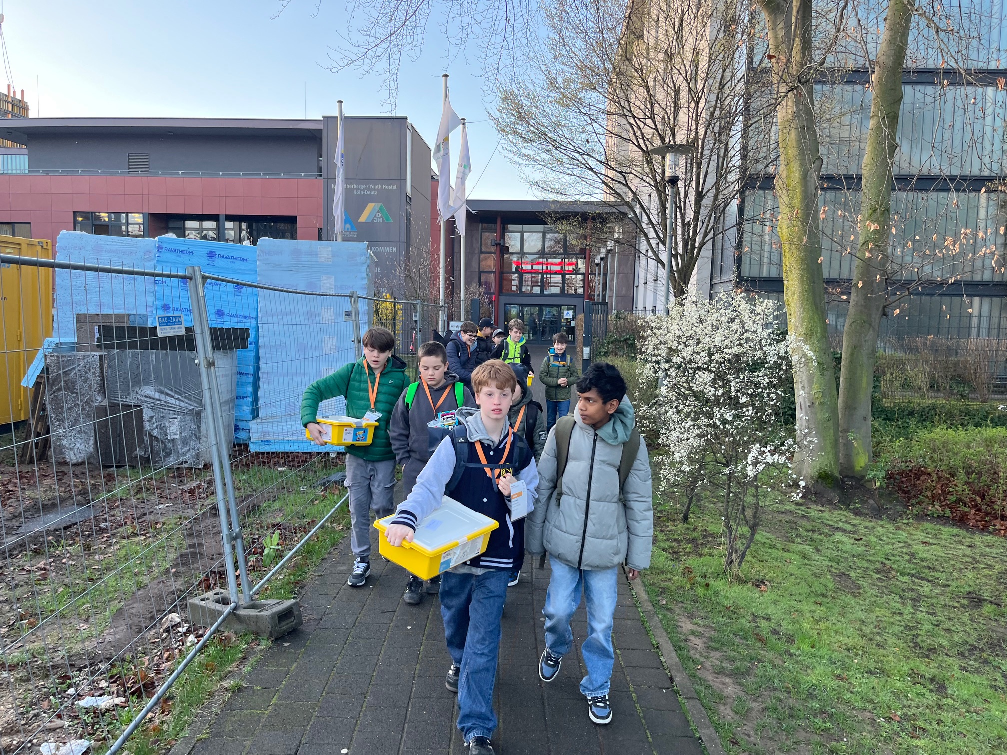 Insgesamt vier Teams der Schule nahmen in der Kategorie Rescue Line Entry teil und stellten dort ihre selbst entwickelten Roboter vor. Dazu reisten sie zusammen mit ihren Coaches Frau Lehrke und Frau Sürig nach Köln in die Jugendherberge. Felix Kaul, William Freise, Benno Reitt, Johannes Haack, Saam Ekhteraei, Moritz Reinelt, Tom Zernikow, Darshan Tangatur, Tim Diessel und Miron Schumajew bewiesen ihr Können im Programmieren.