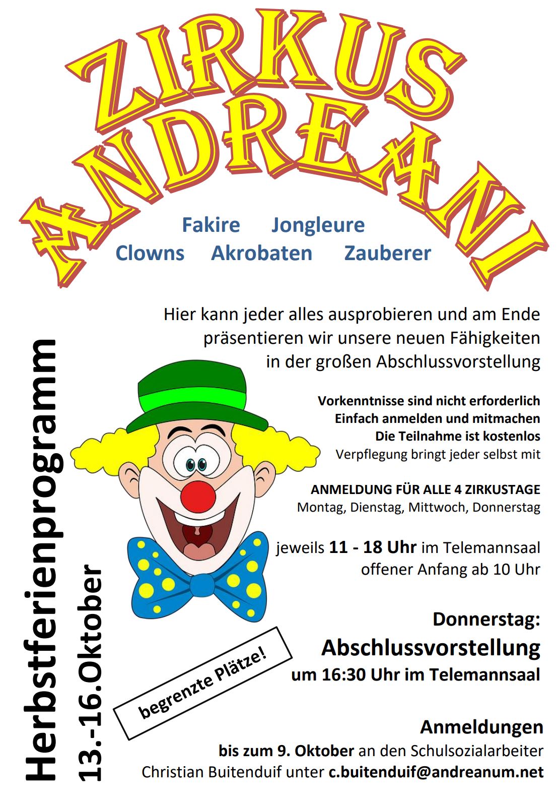 Das Ferienprojekt "Zirkus Andreani" geht vom 13.-16. Oktober 2025 jeweils von 11-18 Uhr.