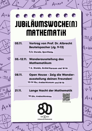Im November ist es endlich soweit. Die Mathe- und Informatikwoche bildet den Abschluss der Jubiläumswochen in unserem "Feier-Jahr".
